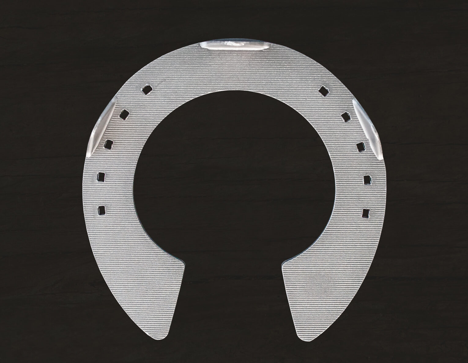 Three clips, steel insert embedded in the toe to increase wear resistance, made of aerospace grade aluminium alloy, designed for maximum endurance – The Aluminium Horseshoes are available as part of the Jim Blurton remedial horseshoe range.